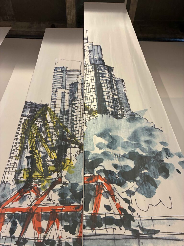 Usando los dibujos del libro PM a Mano Alzada, la muestra relata la historia del barrio a través de croquis y bocetos de diferentes arquitectos, desde el Plan Maestro hasta hoy.
